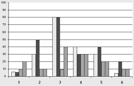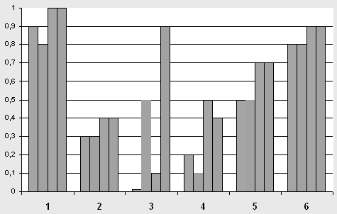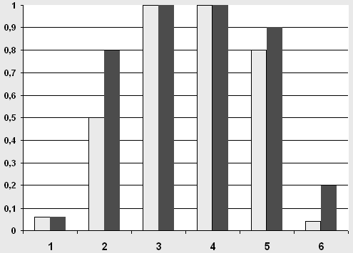 Таким образом, в результате контрольного эксперимента у детей экспериментальной группы наметилось значительное повышение остроты зрения. В процентном отношении это составляет: 1.Андрей С. – повысилось на 6% оба глаза; 2. Артём Ш. – повысилось на: правый глаз на 30%; левый – на 50%; 3. Миша В. – повысилось на 80% оба глаза; 4. Дима Г. – повысилось на: правый глаз на 40%; левый – на 30%; 5. Алеся З. – повысилось на: правый глаз на 30%; левый – на 40%; 6. Максим Г. – повысилось на: правый глаз на 4%; левый – на20%; Графически это выглядит следующим образом. График №2.