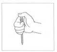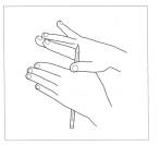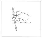 НАСОС Исходное положение: Зажать ученическую ручку в вертикальном положении четырьмя пальцами так, чтобы небольшая ее часть возвышалась над кистью руки. Содержание упражнения: Большим пальцем нажать на конец ученической ручки, которая чуть опустится, а другой рукой снизу подтолкнуть ее вверх и снова нажать на конец ручки большим пальцем. Двигающаяся вверх-вниз ручка похожа на работающий насос. Дозировка: До 5 раз с расслаблением кисти руки.
