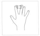ШТАНГА Исходное положение: Ладонь с разведенными в стороны пальцами лежит на столе. Между средним и указательным пальцами одной руки зажата катушка. Содержание упражнения: Поднять катушку усилием мышц над столом как можно выше, как штангу. Большой, безымянный пальцы и мизинец плотно прижать к поверхности стола. Дозировка: Повторить подъем «штанги» (катушки) 4-5 раз, после чего поставить катушку, стряхнуть кисть руки, расслабляя мышцы.