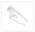 ПРИЖМИ К ЛАДОШКЕ Исходное положение: Катушка удерживается за внешние стороны дисков в горизонтальном положении между большим пальцем и мизинцем. Три остальных пальца находятся над катушкой в свободном положении. Содержание упражнения: По команде взрослого прижать катушку к ладони. Затем, тоже по команде, выдвинуть ее вперед как можно дальше. Дозировка: Повторить 5-6 раз, после чего поставить катушку, стряхнуть кисть руки, расслабляя мышцы.