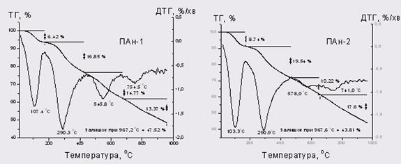 Деякі із зразків були проаналізовані в атмосфері азоту на приладі NETZSCH TG209 в межах температур 20 -» 1000 оС. На рис. 4.2.4 зображені ТГ-криві досліджуваних зразків.