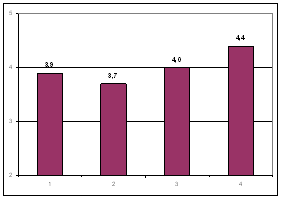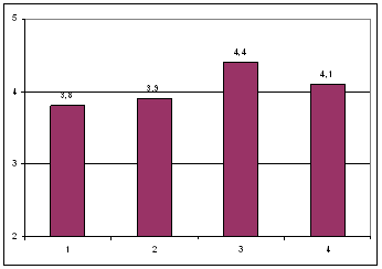 1- самостоятельные задания 2- творческие задания 3- вопросы проблемного характера 4- репродуктивные вопросы Внимательно посмотрев на результаты опросов, и сравнив их, мы можем сделать вывод о том, что, интерес к вопросам проблемного характера и творческим заданиям вырос у учеников, при этом интерес к репродуктивным вопросам и самостоятельным заданиям спал. Все это говорит о том, что учеников заинтересовали вопросы и задания, предложенные им нами на уроках литературы. И эта заинтересованность повлияла на то, что ученики тщательнее готовились к урокам, к домашним заданиям, о чем свидетельствует повышение уровня успеваемости класса по данному учебному предмету в первой четверти. Наглядно это можно увидеть в таблице 2 и приложении №1.