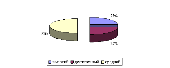 Рис. 2.4 Процентное соотношение результатов проверки начитанности учащихся экспериментальной группы. Как видно из рис.2.3- 2.4 66,7% учащихся контрольной группы имеют средний уровень начитанности, 8,3% - высокий и 25% - низкий уровень начитанности. В экспериментальной группе средний уровень наблюдается у 50% детей, 25% имеют высокий уровень начитанности и 25% - низкий. На заключительном этапе исследования была проведена беседа с учениками, направленная на выявление читательского интереса учащихся, их читательской самостоятельности. В приложении В представлены вопросы беседы, составленной на основе материалов О.Джежелей и Н.Светловской [9]. Анализ результатов констатирующего эксперимента позволил сделать вывод о том, что уровень развития читательской самостоятельности младших школьников не отвечает требованиям. Основными показателями этого являются: отсутствие в большинстве школьников (66,7%) интереса к чтению как к одному из средств познания окружающего мира, самоусовершенствования и источника эстетичного наслаждения; недостаточный уровень знаний, умений и навыков, которые дают ученикам возможность с наименьшей затратой сил и времени пользоваться книгой (и учебной, и неучебной) по осознанному выбору. В итоге смогли самостоятельно применить такие самые распространенные приемы, как пользоваться библиотечными сведениями, 8,3% учеников; нахождение книги по внешним и внутренним признакам – 16,7%; составление плана прочитанного – 16,7%; сжатый пересказ – 16,7%; оформление карточки на прочитанную книгу – 8,3% школьников. Таким образом, определение уровня сформированности читательской самостоятельности первоклассников в ходе констатирующего эксперимента позволила сделать вывод о необходимости проведения методов , направленных на формирование читательской самостоятельности первоклассников на уроках внеклассного чтения. 2.2 Методы и динамика формирования читательской самостоятельности первоклассников на уроках внеклассного чтения Из основной цели внеклассного чтения вытекает ряд задач, решение которых способствует становлению ребёнка – читателя: × обеспечить полноценное восприятие произведения, понимание учащимися текста и специфики его литературной формы (жанра), выявление точки зрения писателя, формирование позиции читателя; × работать над навыком чтения; × формировать литературоведческие представления и понятия, которые необходимы школьнику для освоения литературы как искусства слова; × включать учащихся в самостоятельную творческую деятельность, развивать речь; × расширять круг чтения младших школьников. В ходе формирующего эксперимента, направленного на формирование читательской самостоятельности первоклассников на уроках внеклассного чтения ведущим методом обучения выступил метод чтения-рассматривания. По мнению Е.Бугрименко [4], основой проявления данного метода является аксиома деятельности любого квалифицированного читателя: книгу читают и смотрят. Смотрят: 1) до того, как приступят к чтению, чтобы не ошибиться в выборе и настроиться на предстоящее чтение; 2) в процессе чтения, чтобы, ориентируясь на шрифт, рисунки и т.п., выделить главное, а с помощью сносок и иллюстраций не пройти мимо нового, непонятного, неизвестного и т.п.; 3) после прочтения, чтобы уточнить и перепроверить объективность, правильность общей оц