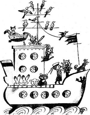 Сосчитай, сколько людей, сколько зверей и сколько птиц плывут на этом корабле?