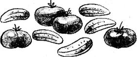 Рассмотри внимательно картинку. Чего больше - огурцов или помидоров? На сколько?