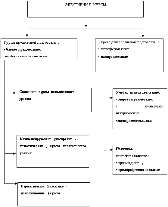 Опишем каждый из представленных блоков. Все элективные курсы можно разделить на 2 основные группы: I. Курсы предметной подготовки. II. Курсы универсальной подготовки. I. Курсы предметной подготовки – это элективные курсы, задача которых – углубление и расширение знаний по предметам, входящим в базовый (базово-предметные курсы) или профильный (профильно-предметные курсы) компонент учебного плана профиля. В свою очередь, элективные курсы предметной подготовки (как базово-предметные, так и профильно-предметные) можно разделить на три группы по признаку тематического согласования учебного предмета и элективного курса. 1) Сквозные курсы повышенного уровня, направленные на углубление того или иного учебного предмета, имеющие как тематическое, так и временное согласование с этим учебным предметом. Выбор такого элективного курса позволит изучить выбранный предмет на углублённом уровне, в этом случае все разделы курса углубляются более или менее равномерно. 2) Компенсирующие (дискретно-тематические) курсы повышенного уровня – элективные курсы, в которых углублённо изучаются отдельные разделы предмета, входящего в базовый или профильный компонент. 3) Вариативные (тематико-дополняющие) курсы – элективные курсы, в которых углублённо изучаются отдельные разделы учебного предмета, не входящие в обязательную программу данного предмета. II. Курсы универсальной подготовки – это элективные курсы, удовлетворяющие познавательные интересы учащихся в областях деятельности человека, выходящих за рамки выбранного им профиля. По признаку формирования содержательного компонента универсальные курсы можно подразделить на межпредметные и надпредметные элективные курсы. Межпредметные элективные курсы интегрируют содержание учебных предметов, входящих в учебный план профиля. Надпредметные элективные курсы ориентированы на изучение предметов, не входящих в учебный план. В свою очередь, элективные курсы универсальной подготовки (как межпредметные, так и надпредметные) по признаку «ведущей деятельности » можно разделить на две группы: учебно-познавательные и практико-ориентированные. · В составе учебно-познавательных курсов выделим: · мировоззренческие элективные курсы, посвящённые изучению методов познания природы; · культурно-исторические элективные курсы, посвящённые истории предмета как входящего в учебный план школы, так и не входящего в него; · экспериментальные элективные курсы, посвящённые изучению методов решения задач, составлению и решению задач на основе эксперимента. 2) Практико-ориентированные элективные курсы можно подразделить на: · прикладные курсы – элективные курсы, цель которых – знакомство учащихся с важнейшими путями и методами применения знаний на практике, развитие интереса учащихся к современной технике и производству; · предпрофессиональные курсы – элективные курсы, реализующие программы предпрофессильной подготовки и ориентированные на приобретение школьниками образовательных результатов для успешного продвижения на рынке труда. Элективные курсы, хотя и различаются по целям и содержанию, должны соответствовать запросам учащихся, которые их выбирают.] 1.3.3 Комплексный подход к обучению Единство обучения, воспитания и развития является важнейшим фактором в решении задачи формирования всесторон