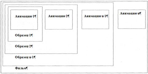 Flash предоставляет интересную возможность: вы можете анимировать образец библиотеки, превратив его в небольшой фильм. Впоследствии можно создать экземпляр на основе этого анимированного образца и анимировать его. В этом случае не только сам экземпляр будет двигаться или иначе менять свой вид, но и параллельно будет проигрываться его собственная анимация. Благодаря этому вы можете создавать очень сложные анимации. Одна анимация как бы вкладывается внутрь другой. Такая анимация и называется вложенной. Также часто такую анимацию называют многоуровневой. Приложение 6 АНИМАЦИЯ ПРИ ПОМОЩИ ACTIONSCRIPT 1. Запустим программу Macromedia Flash 2. Выделим 10-ый, 20-ый и 30-ые кадры и правой кнопкой создадим на них ключевые кадры, нажав Insert Blank Key Frame. 3. Установим черный цвет окантовки, оранжевый цвет заливки и нарисуем круг на полотне. 4. Установим среднее сглаживание линий Smoth, черную окантовку и голубую заливку. 5. Выделим 20-ый кадр 6. Создадим какую-то фигуру в правой части экрана. 7. Установите размер и цвет шрифта. 8. В прямоугольнике 10-го кадра напишем одно слово, например ПЛАНЕТА, в фигуре 20-го кадра другое слово, например ЗЕМЛЯ. 9. На первом и на последнем кадрах нажмем дважды Break Apart (для превращения текста в векторный рисунок). 10. Скопируем кадр 10 и вставим его в 1-ый 11. Скопируем 20-ый кадр и вставим его в 30-ый 12. Установим курсор где-то посредине каждого промежутка на шкале времени и в нижнем окне Tween установим Shape (преобразование формы). 13. Изображение на первом кадре передвинем в центр полотна 14. Выходим в режим масштабирования и уменьшаем до минимума на 1-ом кадре изображение 15. Аналогично на 30-ом кадре изображение передвигаем так же в центр полотна и уменьшаем его масштаб до минимума 16. Проверим преобразование формы, двигаясь по оси времени. 17. Введем новый символ: Insert, New Symbol, Button. 18. Установим черную окантовку и зеленую заливку. 19. Нарисуем кнопку в виде прямоугольника. 20. Скопируем ее и вставим в остальные кадры работы кнопки. 21. Расцветим разные кадры кнопки разными цветами. 22. Войдем в библиотеку. 23. Посмотрим как работает кнопка в окне. 24. Войдем в режим сцены. 25. Вставим новый слой и назовем его КНОПКА. 26. Скопируем кнопку на полотно сцены. 27. Выделим нарисованную на сцене кнопку правой кнопкой мыши. 28. Войдем в режим action. on (release) { 29. Сценарий, назначенный клипу, использует программу-обработчик подобно сценарию кнопки в предыдущем занятии. Чтобы задать программу обработки, вместо командной строки on введите строку onCIipEvent, которая определяет события для клипов ролика. В данном случае событие будет следующим: enterFrame. Это автоматическое событие, происходящее при каждом обращении к данному кадру. Если ролик должен воспроизводиться со скоростью 12 кадр/с, оно должно посылаться в программу обработки 12 раз в секунду. Если ролик остановлен командой stop () или просто состоит из одного кадра, то кадр "зацикливается", то есть перерисовывается с той скоростью, которая задана ролику Подобно программе on (press) в сценарии кнопки, команды реакции на событие onClipEvent (enterFrame) заключаются в фигурные скобки. В данной программе будет только одна команда, перемещающая клип на один пиксель влево. Давайте взглянем на сценарий и проанализируем, какие действия в нем выполняются. onClipEvent(enterFrame) { this._ x -- ; } Разберем команду this._х -- по частям. Команда this обозначает обращение команды к объекту, который ее сод