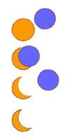 Данный эффект в обычных условиях создается, когда камера, использующая сложную оптику, направлена на яркий источник света. В результате в кадре можно увидеть прозрачные кружки разных размеров. Если мы поворачиваем камеру, соответственно, и блики изменяют положение. Создать такой эффект во Flash не трудно. Рисуем белый кружок, преобразуем в символ, делаем полупрозрачным. После этого создаем еще несколько подобных кружочков (4-5, больше не нужно), делаем их разными размерами и размещаем следующим образом. Кружки должны размещаться на одной оси, которая исходит из центра солнца и уходить в противоположный от солнца угол, т.е. если, например, солнце находится в правом верхнем углу, то блики пойдут влево вниз, если солнце находится ровно по центру, то блики совпадут с солнцем. Для этого лучше создать отдельный символ, куда можно будет поместить все элементы (например, символ "sun"). Далее размещаем на разных слоях солнце (1 слой), лучи (1 слой) и блики (на разных слоях). Создаем движение в слое с солнцем, перемещаем его из одного края в другой. Напомню, что данный эффект используется в случае, если Вы имитируете перемещение камеры. Если все остальные объекты останутся на месте, то Вы получите аномальное солнце, неизвестно по какой причине плывущее по горизонту. Итак, солнце переместили, теперь в ту же точку перемещаем и лучи, при этом немного поворачивая их. Это очень важно, иначе будет смотреться нереалистично. Сами лучи лучше сделать переливающимися, для этого в каждом символе создайте движение от alpha=100% к alpha=60% и обратно, от иллюзии переливающегося солнца будет аж слепить глаза. Но не забудьте в каждом отдельном лучике поставить различную длину движения, иначе Вы рискуете получить не переливающееся солнце, а мигающую сирену. Теперь анимируем блики. Перемещаем их по оси, из одного края в другой. Сложного ничего нет, просто создайте движение и разместите блики с другой стороны по нужной оси, а правильный путь они пройдут автоматически (деваться им будет некуда). Приложение 3 ВЫЧИРТАНИЕ КОНТУРОВ · Нарисуйте 2 одинаковых круга; · Разместите их так как показано на рисунке. Контуры обоих кругов объединяются; · Выделите заливку и линию обводки полного круга (двойной щелчок инструментом Стрелка на заливке); · Переместите круг так, чтобы он не имел с полумесяцем общих точек и удалите его; · Выберите инструмент Контур и восстановите линию обводки вогнутой части полумесяца.