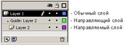 Приложение 4 ИСПОЛЬЗОВАНИЕ ТРАЕКТОРИИ ДВИЖЕНИЯ Траектория движения – это линия, по которой движется анимируемая вами фигура. Вы сможете создать такую траекторию во Flash на направляющем слои могут служить и для изображения на них вспомогательных линий и фигур, как, например, для эскиза. Если эти линии и фигуры создавались на направляющем слое, при проигрывании готового ролика они не будут отображаться. 1. Нарисуйте фигуру, которую собираетесь анимировать, и преобразуйте ее в графический символ. Она должна располагаться на отдельном слое. Создайте второй ключевой кадр для кадра 30, а между этими двумя кадрами – несколько промежуточных с помощью Motion Tweening (Анимация на основе модификации символов). Это необходимо для того, чтобы на вашей траектории движения было больше одного ключевого кадра. 2.Теперь можно приступить к созданию траектории движения. Выделите, если она не достаточно кривая, активируйте инструмент слой, на котором она будет располагаться. Выполните команду Insert – Timeline Motion Guide (Вставить – Временная шкала – Направляющий слой) или просто нажмите на кнопку Add Motion Guide (Добавить направляющий слой) в нижней части панели Timeline(Временная шкала). Таким образом, вы создадите слой Guide (Направляющий) – имя слоя задается автоматически. У слоя находящегося под слоем направляющих и соответственно под его воздействием, должен появиться отступ.