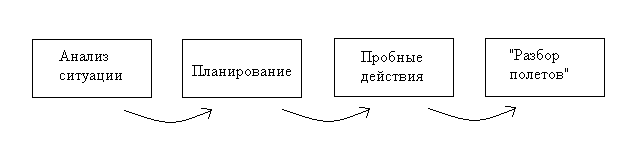 Рис.7 После непосредственной остановки деятельности, должен быть поставлен вопрос о причинах, затрудняющих действие и средствах, необходимых для их преодоления. Таким образом из позиции деятеля осуществляется переход в новую, рефлексивную позицию внешнюю по отношению к прежней и будущей, проектируемой (рис. 7). Для ответа на вопросы «почему не получилось действие?» и «что нужно сделать чтобы оно получилось?» необходимо обратиться к исходным действиям и проанализировать их. Ответ на эти вопросы создается в виде проекта или плана предстоящей деятельности. Построенный план-проект является оформленным новым способом действия (рис. 8).