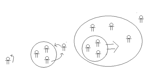 Рис.9 Посредством схем обсуждается понятие разрыва, а сами разрывы объективируются в слое деятельности в новый способ действия. Схема «антропологического сдвига - расширения горизонта» Для нас важным рабочим понятием является понятие «горизонта» или «рамки». «Горизонт» представляет собой спектр культурных, социальных и образовательных ситуаций в которых человек замкнут. Деятельность субъекта во многом обусловлена его представлениями о мире, которое задает для него «поле возможного». Возможность нового действия, перехода к новой деятельности возникает когда горизонт, задающий границу представлений о мире изменяется. «Расширение горизонта» может происходить в ситуации, когда задается новое поле смыслов, переопределяющих и перезадающих картину мира.