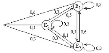 вектором Решение. Построим граф, соответствующий вектору начальных вероятностей и матрице перехода: