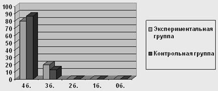 Исследование объема и качества активной речи дошкольников с билингвизмом показало, что лишь 5 из 15 детей набрали высший балл, среди которых 3 ребенка с доминирующим русским языком, 1 ребенок с доминирующим черкесским и 1 ребенок эквивалентно владеющий тремя языками: русским, черкесским и абазинским. Но при этом 2 (с доминирующим русским языком) из 5 набрали 176 и 177 баллов, что соответствует нижней границе 4-х бального отрезка. Самые высокие баллы по результатам исследования объема и качества активного словаря набрали 2 детей - 214 баллов (полилингв, с 3-х летнего возраста свободно владеет 3-мя языками) и 209 баллов (билингв с доминирующим русским языком). Таким образом, 33% детей, вошедших в экспериментальную группу, набрали 4 балла, остальные 67% набрали 3 балла. От 2 до 0 баллов не набрал никто. В отличие от экспериментальной группы, дети вошедшие в контрольную группу показали довольно высокие результаты. Только 1 ребенок набрал по результатам исследования 3 балла. Все остальные набрали высший балл – 4.