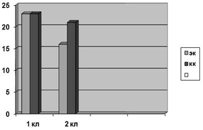 К концу второго года обучения учащиеся экспериментального класса стали допускать меньше ошибок при чтении. Показатели этого параметра в контрольном классе значительно не изменились (рисунок 3).