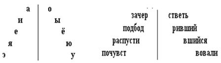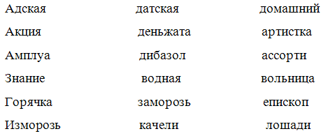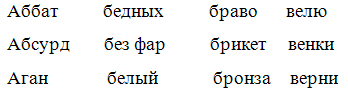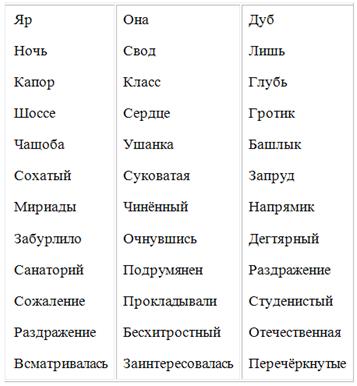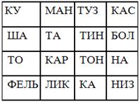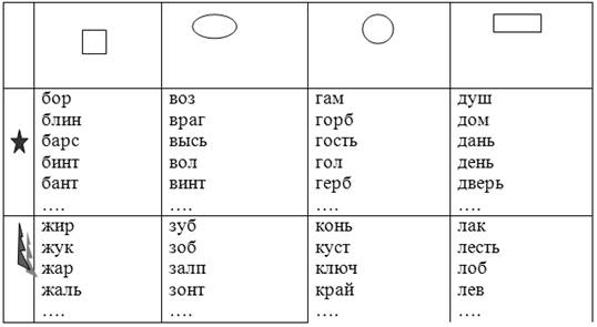 Задание: прочитай слоги про себя по порядку (сверху вниз, слева направо). Постарайся запомнить слоги. Составь из данных слов слова. Посмотри внимательно в центр первой строки. Не отводя взгляда от центра, назови, какие буквы(слова) ты видишь слева направо.