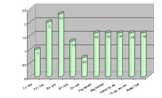 В методике №1 исследовалось структурирование словосочетаний с существительными в творительном падеже. У детей с ОНР мы отметили многочисленные нарушения сформированности грамматических конструкции с существительными в творительном падеже, такие ошибки, как употребление слова в именительном падеже («пилит пила») замены флексии внутри падежа («пилом», «указким»), между падежами, а также искажение флексии («мелим»). В данной диагностике у детей возникали ошибки не только грамматического, но и лексического характера. Так, например, дети составляли словосочетания «пилит мотолоком» - (пилит молотком), «касит кадашем» (раскрашивает карандашом), что свидетельствует о несформированности лексического значения слов. Уровень сформированности грамматических конструкций творительного падежа существительных у детей экспериментальной группы составил 1 балл (низкий). В методике №2 мы исследовали структурирование словосочетаний с существительными в родительном падеже. Первая часть данной диагностики, в которой исследовалось беспредложное управление в родительном падеже, вызвала только единичные затруднения. Употребление родительного падежа с предлогами «у» и «из» вызвала значительные затруднения и необходимость помощи экспериментатора. Дети использовали для ответа существительные в именительном падеже «и скакан» (пьет из стакана), часто опускали предлог. Результат выполнения данного теста у детей с ОНР составил 2 балла, что относится к среднему уровню сформированности грамматических конструкций. В методике № 3 мы исследовали структурирование словосочетаний с существительными в винительном падеже. У детей с ОНР в данной диагностике наибольшие затруднения вызвала дифференциация вопросов «кто», «что» (т.е. существительных одушевленных и неодушевленных), однако дети исправляли свои ошибки после помощи экспериментатора. Также у двух детей отмечался пропуск предлога «у». Однако необходимо отметить, что уровень сформированности грамматических конструкций винительного падежа существительных у детей экспериментальной группы составил 2,3 балла (средний). Это наилучший результат по всем проведенным диагностикам. В методике №4 мы исследовали структурирование словосочетаний с существительными в дательном падеже. 3 ребенка не справились с выполнением данного задания, т.к. в ответах этих детей мы отметили пропуск предлога «к», а также употребление существительного в именительном падеже («подходит дерево») Результат выполнения данного теста у детей с ОНР составил 1,3 балла, что относится к низкому уровню сформированности грамматических конструкций. В методике №5 мы исследовали структурирование словосочетаний с существительными в предложном падеже. Данная методика вызвала наибольшие затруднения у детей с ОНР. Результат выполнения данного теста у детей с ОНР составил 0,7 балла (это самый низкий средний балл по всем диагностикам), что относится к низкому уровню сформированности грамматических конструкций. С помощью экспериментатора безошибочно с данной методикой справилось только 3 ребенка с ОНР. У детей с ОНР были выявлены следующие типы ошибок: - пропуск предлогов «на», «в», «под», например: «кошка сидит стуле»; - употребление существительного в именительном падеже, например: «птичка сидит на клетка»; - замену флексии внутри