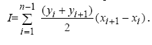 Значение интеграла: Метод трапеций Площадь трапеции равняется полусумме оснований, умноженной на высоту, которая равна расстоянию между точками по оси х. интеграл равен сумме площадей всех трапеций.