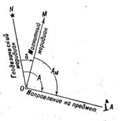 Рис.3 Если на карте измерен дирекционный угол направления, то магнитный азимут этого направления на местности: