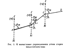 По исходному дирекционному углу a0 и исправленным значениям углов b хода по формуле для правых углов вычисляем дирекционные углы всех остальных сторон: дирекционный угол последующей стороны равен дирекционному углу предыдущей стороны плюс 180° и минус правый (исправленный) угол хода, образованный этими сторонами.