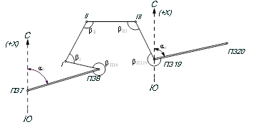 Для контроля вычисления дирекционных углов находим конечный дирекционный угол an по дирекционному углу aIII-ПЗ19 последней стороны и исправленному углу bП319 при вершине ПЗ 19 (рис. 2). Вычисленный угол an и угол по условию задачи an должны быть равны.