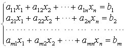 задовольняють таким співвідношенням: Тут aij (i = 1, 2, … , m; j = 1, 2, … , n) і bk (k = 1, 2, … , m) – задані числа. При цьому: Матриця А називається головною матрицею системи, вектор b – вектором-стовпцем правих частин, вектор x – вектором-стовпцем невідомих. Використовуючи ці позначки, можна систему записати в матричній формі: Ах = b. Якщо b1 = b2 = ¼ = bm = 0, то система рівнянь називається однорідною. Якщо хоча б одне з bk (k = 1, 2, ¼ , m) відмінне від нуля, то система називається неоднорідною.