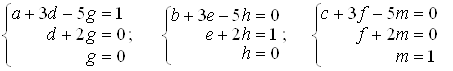 Із цих співвідношень одержуємо: g = 0, d = 0, a = 1; далі: h = 0, e =1, b = –3. І нарешті: m = 1, f = –2, c = 11. У підсумку дійдемо висновку, що: