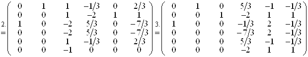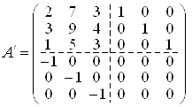 Знайти матрицю, яка є оберненою до матриці Розв’язання. Побудуємо матрицю 6 ´ 6, дописавши праворуч від А одиничну матрицю Е, внизу матрицю (– Е), а інші місця заповнимо нулями.