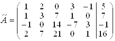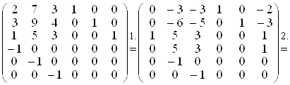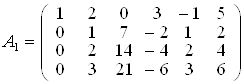 матриця системи має вигляд: Знайдемо ранг матриці А. Перший рядок матриці з відповідними множниками додамо до інших рядків матриці так, щоб елементи першого стовпця обернулися на нуль, крім елемента а11. Вийде матриця А1 така, що rangА1 = rangА і Відзначаючи, що третій і четвертий рядки матриці