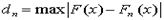 кроме того, на уклонения наложены еще две связи, ибо по выборке были определены два параметра распределения. Критическое значение c2(3; 0,05)=7,815 определяется по табл. П.3 приложения. Поскольку соблюдается условие c2<c2(3; 0,05), то полученный результат нельзя считать значимым и гипотеза о нормальном распределении генеральной совокупности не противоречит ЭД. Критерий А.Н. Колмогорова Для применения критерия А.Н. Колмогорова ЭД требуется представить в виде вариационного ряда (ЭД недопустимо объединять в разряды). В качестве меры расхождения между теоретической F(x) и эмпирической Fn(x) функциями распределения непрерывной случайной величины Х используется модуль максимальной разности