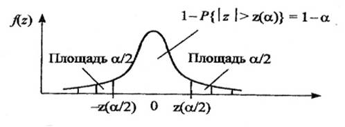 Для симметричной функции плотности распределения f(z) критическую область выбирают из условия a1=a2=a/2 (обеспечивается наибольшая мощность критерия). В таком случае левая и правая границы будут равны |z(a/2)|.
