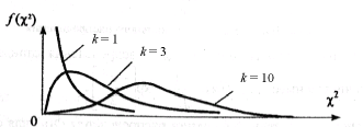 квадратов n стандартизованных случайных величин ui, каждая из которых распределена по нормальному закону, причем k из них независимы, n>=k. Функция плотности распределения хи-квадрат с k степенями свободы