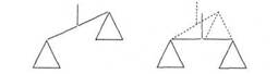 Третий этап обучения направлен на то, чтобы постепенно подводить детей к решению задач в уме. Детям предлагают: «Рассмотрите составленную фигуру. Подумайте, что надо сделать и как. Сначала скажите, как вы собираетесь решать задачу. Проверьте правильность этого способа решения и только потом перекладывайте палочки». Для развития творческой мыслительной деятельности надо учить детей догадываться о решении. Это возможно при глубоком понимании постановки задачи. Педагог предлагает: «Подумай и догадайся, как решить эту задачу». На третьем этапе даются задачи на более сложные преобразования. Задача 3. Из 9 спичек сложите весы (как на рисунке слева). Переложив 5 спичек, сделайте так, чтобы весы оказались в состоянии равновесия. (Ответ дан на рисунке справа.)