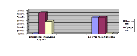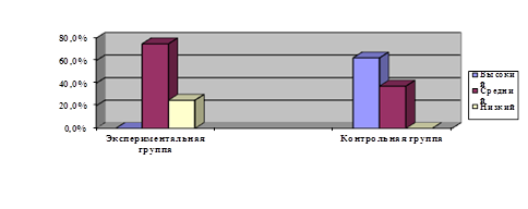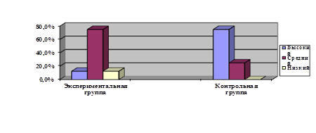 2.3 Пример готовности к обучению Развитие устной речи младших школьников с нарушением внимания – одна из важных задач, решаемых в образовательном процессе. Актуальность проблемы коррекции устной речи младших школьников с нарушением внимания обусловлена новой для них учебной деятельностью, в процессе которой приходится много рассуждать, вступать в диалог с учителем и учениками, пересказывать тексты с научным содержанием, овладевать специальной терминологией и т.д. Коррекция устной речи обеспечивает дальнейшую успешность обучения ребенка. Цель нашей работы: изучить и выявить особенности развития устной речи у младших школьников с нарушением внимания. Рассмотрим Экспериментальное исследование особенностей связной устной речи у учащихся с нарушением интеллекта на примере исследований, проводившихся на базе школа № 296 г. Санкт-Петербурга. В исследовании участвовали дети 2 класса – это экспериментальная группа. Применялся метод тестирования, который был представлен в следующих методиках: 1. Составление рассказа по серии сюжетных картинок (5 картинок). 2. Цель: диагностика умения составлять логически завершенный рассказ с опорой на наглядный материал. Использованы «Рассказы в картинках». 3. Автор: Н. Радлов.[33] Инструкция: посмотри на эти картинки, постарайся разложить их по порядку и составь рассказ. 4. Пересказ прослушанного текста. Цель: диагностика умения составлять логически завершенный рассказ с опорой на память. (рассказ предъявляется не более двух раз) Инструкция: сейчас я прочту тебе небольшой рассказ, слушай внимательно, запоминай и приготовься его пересказывать. Автор: Н. Радлов 5. Ситуация диалога в совместной деятельности. «Рисование со слов». Цель: диагностика умения вести диалог, слушать собеседника, задавать вопросы, уточнять, взаимодействовать в процессе беседы. Автор: Н.Радлов Как показали результаты после проведения 1 методики, дети с нарушением внимания имеют более низкий уровень развития устной речи, чем нормально развивающиеся сверстники. Относительно легко школьникам с нарушением внимания далось задание на построение рассказа по сюжетным картинкам, т.к. наибольшую трудность представляло формирование смысловых звеньев, рассказа, расположение их в правильной последовательности. Часто нарушалась причинно-следственная связь текста. В данной методике был 1 (12,5%) высокий результат, с высоким числом среднего показателя, 6 (75%) результатов со средним показателем и 1 (12,5%) низкий результат. Дети контрольной группы показали лучшие результаты в этой методике: 6 (75%) с высоким, 2 (25%) с средним, низкий результат не отмечен. Результаты отражены на рисунок 1.