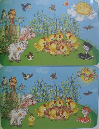 На графике представлены различные зоны продуктивности и типичные кривые, которые могут быть получены в результате психодиагностики внимания ребенка по данной методике. Интерпретируются эти кривые следующим образом: · Кривая №1. Это график очень высокопродуктивного и устойчивого внимания · Кривая №2. Это график низкопродуктивного, но устойчивого внимания · Кривая №3. Представляет собой график среднепродуктивного и среднеустойчивого внимания · Кривая №4. Является графиком среднепродуктивного, но неустойчивого внимания · Кривая №5. Представляет график среднепродуктивного и крайне неустойчивого внимания Устойчивость внимания в свою очередь в баллах оценивается так: · 10 баллов – все точки графика на рисунке 8 не выходят за пределы одной зоны, а сам график своей формой напоминает кривую 1. · 8-9 баллов – все точки графика расположены в двух зонах наподобие кривой 2. · 6-7 баллов – все точки графика располагаются в трех зонах, а сама кривая похожа на график 3. · 4-5 баллов – все точки графика располагаются в четырех разных зонах, а его кривая чем-то напоминает график 4 · 3 балла – все точки графика располагаются в пяти зонах, а его кривая похожа на график 5. Выводы об уровне развития продуктивности и устойчивости внимания· 10 баллов – продуктивность внимания очень высокая, устойчивость внимания очень высокая. · 8-9 баллов – продуктивность внимания высокая, устойчивость внимания высокая. · 4-7 баллов – продуктивность внимания средняя, устойчивость внимания средняя. · 2-3 балла – продуктивность внимания низкая, устойчивость внимания низкая. · 0-1 балл – продуктивность внимания очень низкая, устойчивость внимания очень низкая. внимание младший школьник нарушение речь Приложение 2 Игра «Найди различия» Развивающая игра «Найди отличия» предназначена для детей дошкольного и младшего школьного возраста. Она развивает мышление, логику, внимание. Предложите ребенку внимательно рассмотреть картинки и найти отличия между ними