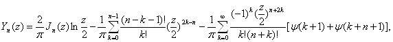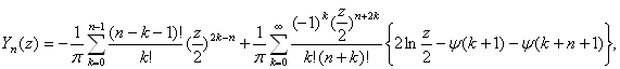 новый значок суммирования Из формулы (3.7) следует, что искомое разложение функции Бесселя второго рода с целым положительным значком имеет вид