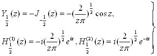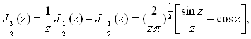 Возможность выразить функцию Бесселя первого рода с любым полуцелым значком через элементарные функции следует теперь из рекуррентной формулы (2.5)
