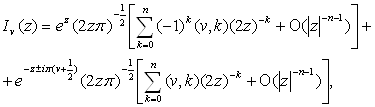Асимптотические формулы для модифицированных цилиндрических функций могут быть получены с помощью соотношений пункта 6. Окончательные формулы имеют следующий вид:
