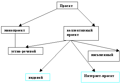 Как показывает данная таблица, каждый тип проекта имеет тот или иной вид координации, сроки исполнения, этапность, количество участников. Поэтому, разрабатывая проект, надо иметь в виду признаки и характерные особенности каждого из них. В реальной практике чаще всего приходится иметь дело со смешанными типами проектов, в которых имеются признаки исследовательских и творческих проектов, проектно-ориентированных и ролево-игровых. Характер организации проекта в большой степени также зависит как от типа проекта, так и от его темы (содержания), условий проведения. Если это исследовательский проект, то он, непременно включает этапность проведения, причем успех всего проекта во многом зависит от правильно организованной работы на отдельных этапах. Поэтому необходимо отслеживать деятельность учащихся поэтапно, оценивая ее шаг за шагом. При поэтапном оценивании необходимо использовать разнообразные формы поощрения: «Все правильно, продолжайте», или «Надо бы остановиться и подумать». В ролево-игровых проектах, предусматривающих соревновательный характер, может использоваться балльная система. В творческих проектах часто бывает невозможно оценить промежуточные результаты, но отслеживать работу необходимо, чтобы вовремя прийти на помощь, если это потребуется. Проект – это решение, исследование определенной проблемы, его практическая или теоретическая реализация. Проектная деятельность учащихся подчинена определенному алгоритму и является сложной, состоящей из нескольких этапов творческой, исследовательской работы. Этим проектная методика отличается от работы над темой, в которой часто достаточно просто усвоить новый материал по теме; от ролевой игры, дискуссии и т.п., в которых роли распределяются в групповой работе для осуществления следующего методического замысла: лучшего усвоения материала, стимулирования интереса, мотивации познавательной деятельности учащихся. Все указанные методические цели могут присутствовать и при использовании проектной методики, но, кроме всего прочего, ей обязательно присуще исследование проблемы, творческая поисковая деятельность, воплощенная в каком-либо конкретном продукте. Однако работа над проектом содержит определенные трудности. Не всегда учащиеся готовы или способны осуществить проектную деятельность на ИЯ: вести дискуссию, обсуждать организационные вопросы, излагать ход мыслей и т.д. Неизбежны и языковые ошибки, так как часть дополнительной информации незнакома учащимся и вызывает определенные языковые трудности. Поэтому повторение и обобщение необходимого грамматического и лексического материала должны предшествовать разработке проектов, а сами проекты целесообразно проводить на заключительном этапе работы над темой, когда уже созданы условия для свободной импровизации в работе с языковым и речевым материалом. Выполнение проектных заданий и участие в проекте позволяет учащимся видеть практическую пользу от изучения ИЯ, следствием чего является повышения интереса к учебному предмету, исследовательской работе в процессе «добывания знаний» и их сознательного применения в различных иноязычных речевых ситуациях, а значит, способствует возрастанию коммуникативной компетенции учащихся, развитию их языковой личности, высокой мотивированности обучаемых. Рез