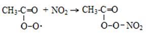Пероксорадикалы могут реагировать с NO2. Из образующихся при этом соединений наиболее известен пероксоацетилнитрат, концентрация которого в смоге может достигать 50 млрд.-1 %: