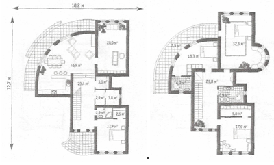 Рис. 4 2.2.2 Аналіз аналога №2 Загальна площа будинку: 262.9 м2 Жила площа: 114.4 м2 Зовнішні стіни: каркасно-щитові Внутрішні стіни: каркасно-щитові або гіпсокартон Дах: скатний Крівля: бітумна черепиця Фасад: штукатурка, камінь Наявність цокольного поверху: відсутній Наявність гаражу: відсутній