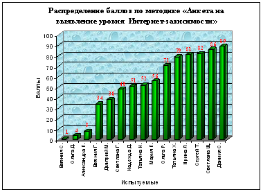 Рис. 1. Распределение баллов по методике «Анкета на выявление уровня Интернет-зависимости»