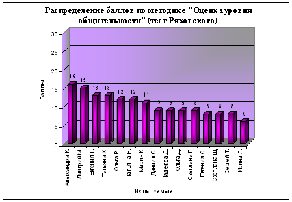 По результатам диагностики по методике «Оценка уровня общительности» (тест Ряховского) можно утверждать следующее.
