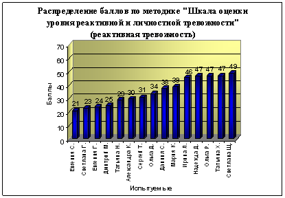 Рис. 5. Распределение баллов по методике "Шкала оценки уровня реактивной и личностной тревожности" (реактивная тревожность)