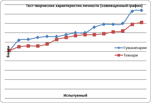 Рис. 1. Совмещенный график для баллов по тесту дивергентного мышления