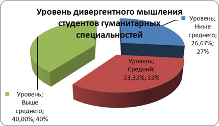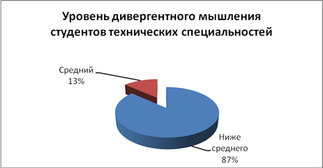 Рис. 3. Уровень дивергентного мышления студентов гуманитарных специальностей Таблица 3. Частота встречаемости тестовых баллов для технической подвыборки (сгруппированные данные)