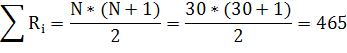 Общая сумма рангов: 315 + 150 = 465. Расчетная сумма: