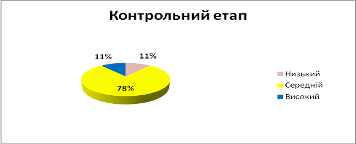 Як видно з таблиці 3 дітей (34%) залишилися на тому ж рівні, 1 дитина (11%) підвищила свій рівень до високого, 4 дитини (44%) підвищили свій рівень до середнього й 1 дитина (11%) залишилася на тому ж рівні (низькому). Найбільше наочно це можна побачити на порівняльній діаграмі (Рис/ 2).