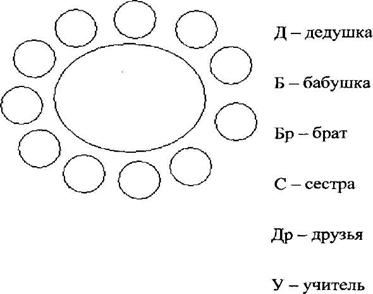 Субтест №3. Вот на рисунке твои родители, учителя, друзья. Поставь крестик (точку) там, где находишься ты. Родители