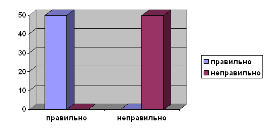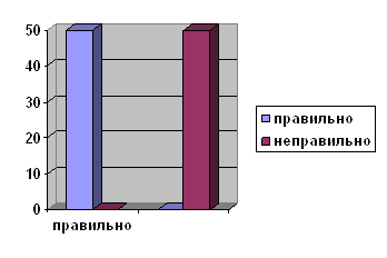При анализе следующего предложения, были выявлено, что все дети справились с заданием без ошибок. Мальчик удит рыбу. ( Увидит, ходит, ловит) Последнее предложение вызвал у учащихся затруднения, учащиеся не пришли к единому мнению. Пестрый ковер укрыл поля и луга. ( Уткнул, застелил, замыл) Только 50% детей заменили слово правильно, 33% детей, посчитали правильным вариант (замыл), и 17% детей заменили выделенное слово на слово (уткнул). И в итоге 50% выполнили правильно и 50% выполнили неправильно. Данные представлены в диаграмме 10. Диаграмма 10 Пестрый ковер укрыл поля и луга. (Уткнул, застелил, замыл)