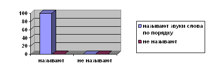 При назывании звук слова по порядку было выявлено, что 100% детей назвали звуки слова по порядку, а 100% детей не назвали звуки слова по порядку. Данные представлены в диаграмме 4. Диаграмма 8 Назвать звуки слова по порядку